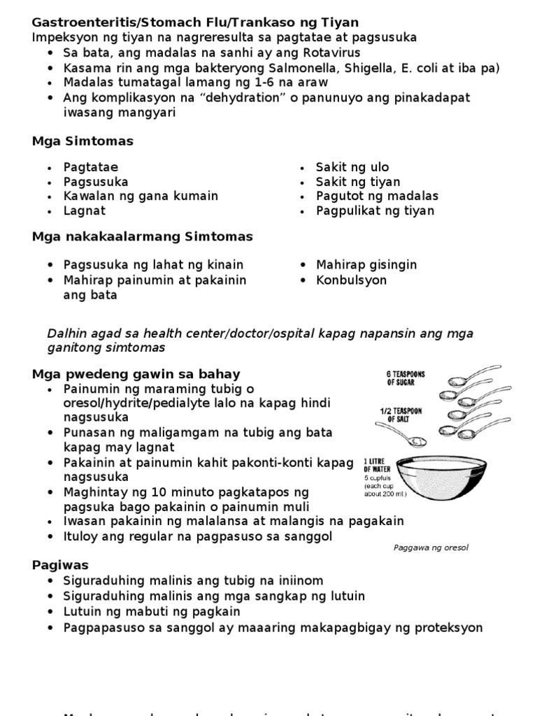 Maraming tao ang tawag dito ay stomach flu ngunit wala itong kinalaman sa trangkaso. Pagsusuka agad pagkatapos kumain. Ito ay isang sakit na nakamamatay na mahirap bigyan ng epektibo na lunas kapag ito ay nasa huling yugto na.